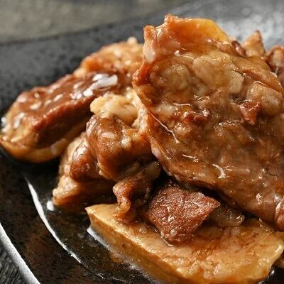 原材料名 : 牛筋肉、醤油、砂糖、酒精、カラメル色素、調味料(アミノ酸等)、甘味料(天草、ステビア)、(原材料の一部に小麦、大豆を含む)