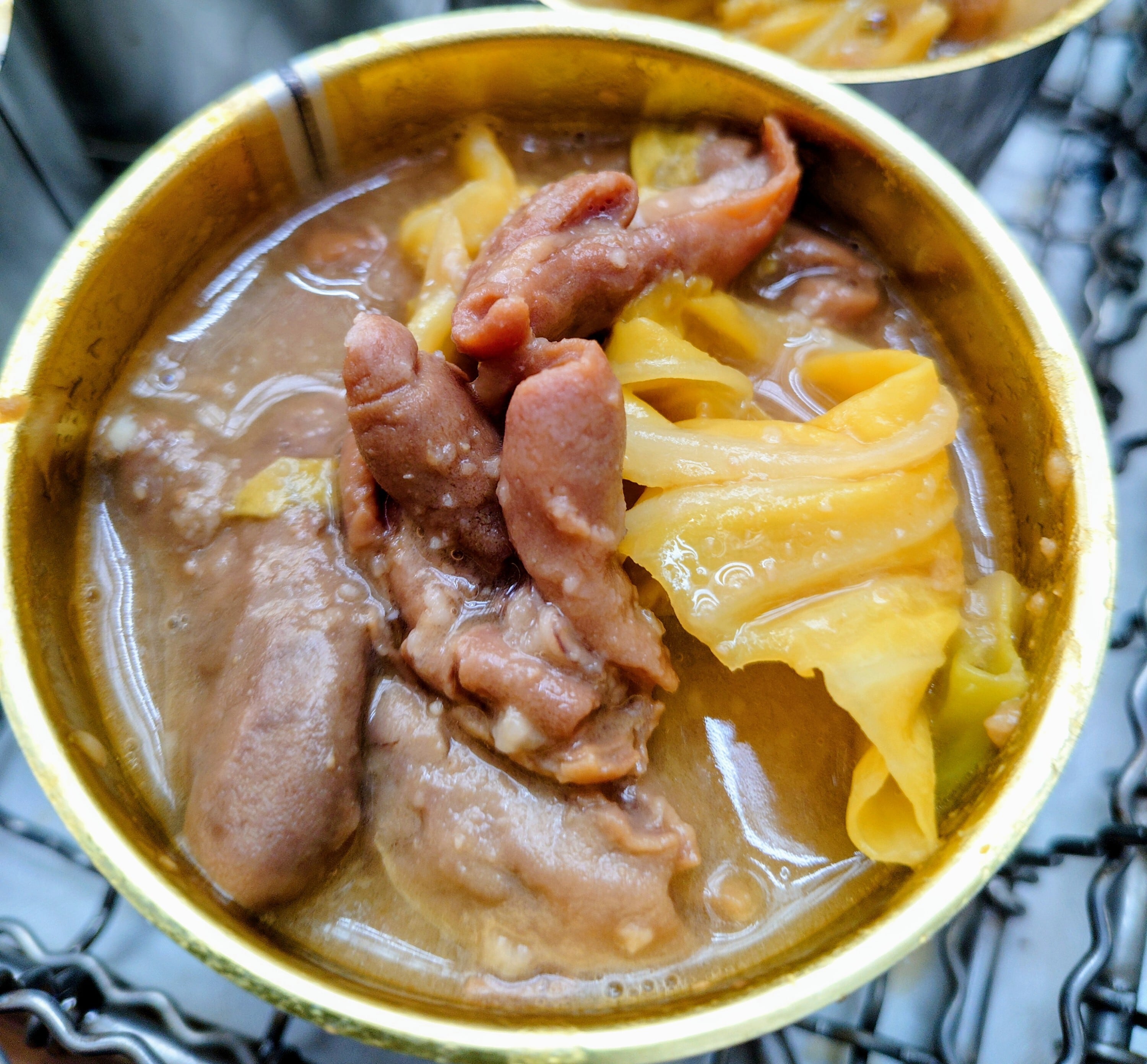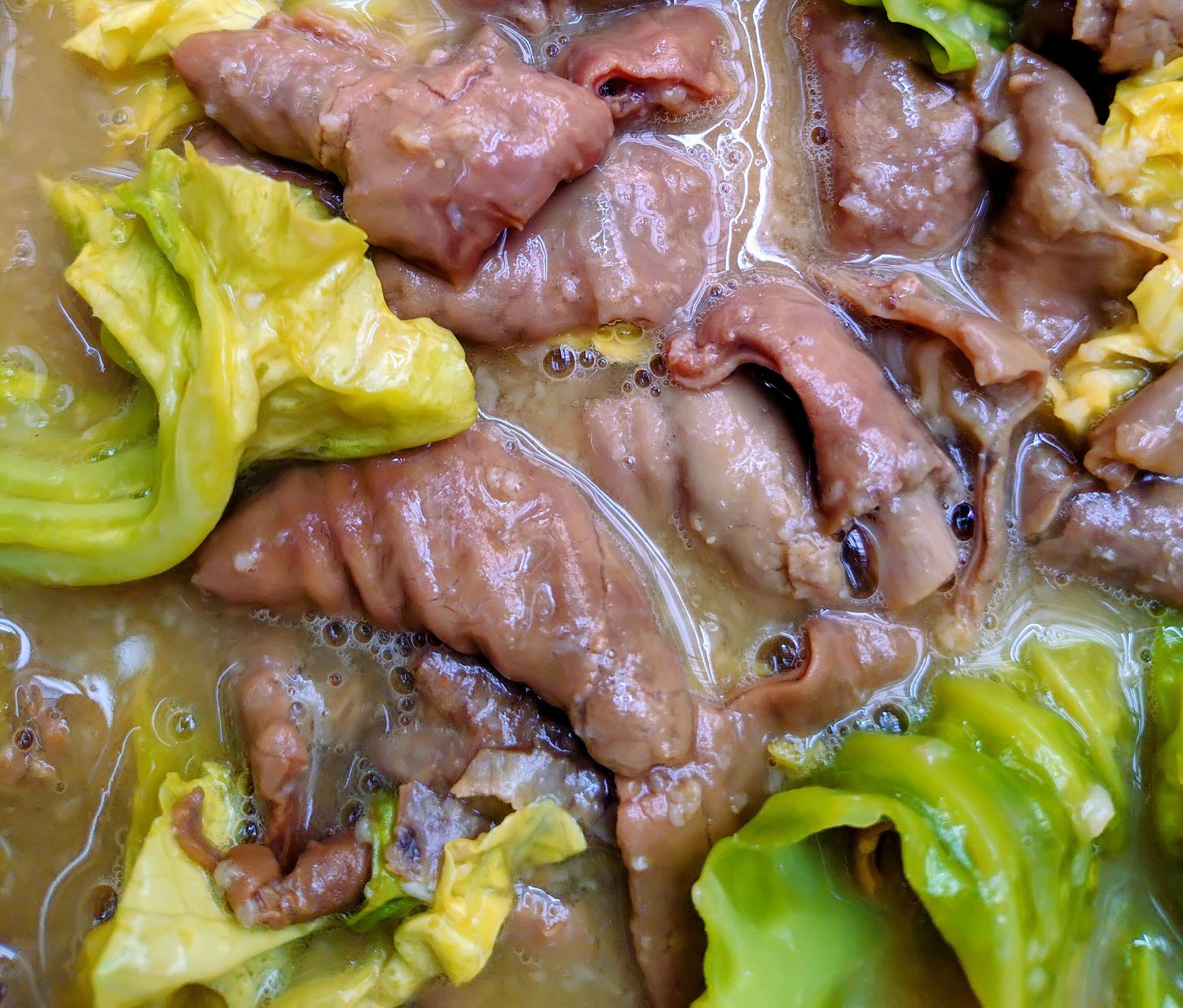 国産の豚もつをニンニク味噌味でキャベツと一緒に柔らかく煮込んであります。