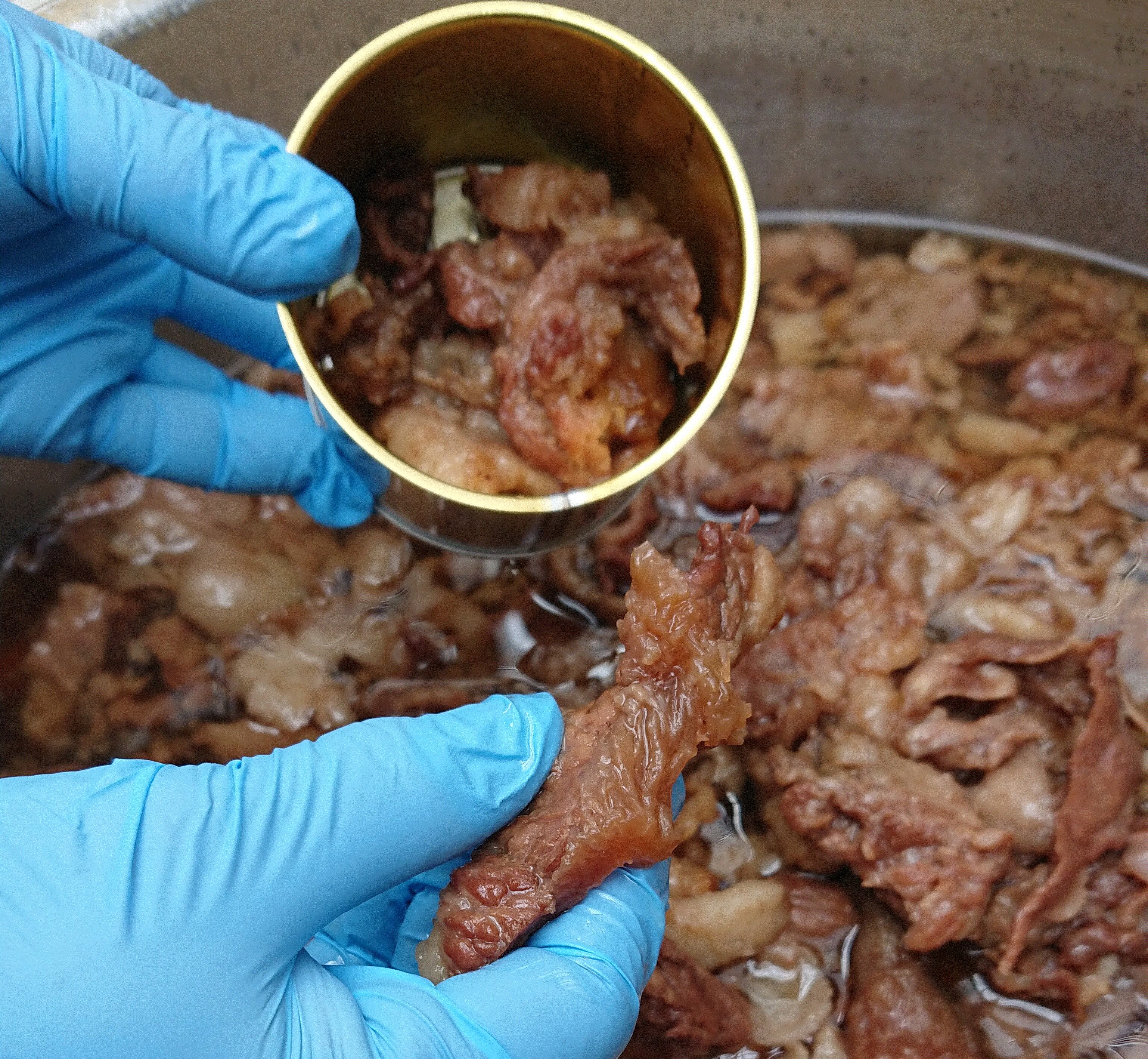 ※冬期は油脂が固まり、缶から出しづらくなる事がありますので、開缶する前に湯煎(ゆせん)すると中身を崩さずに取り出せます。