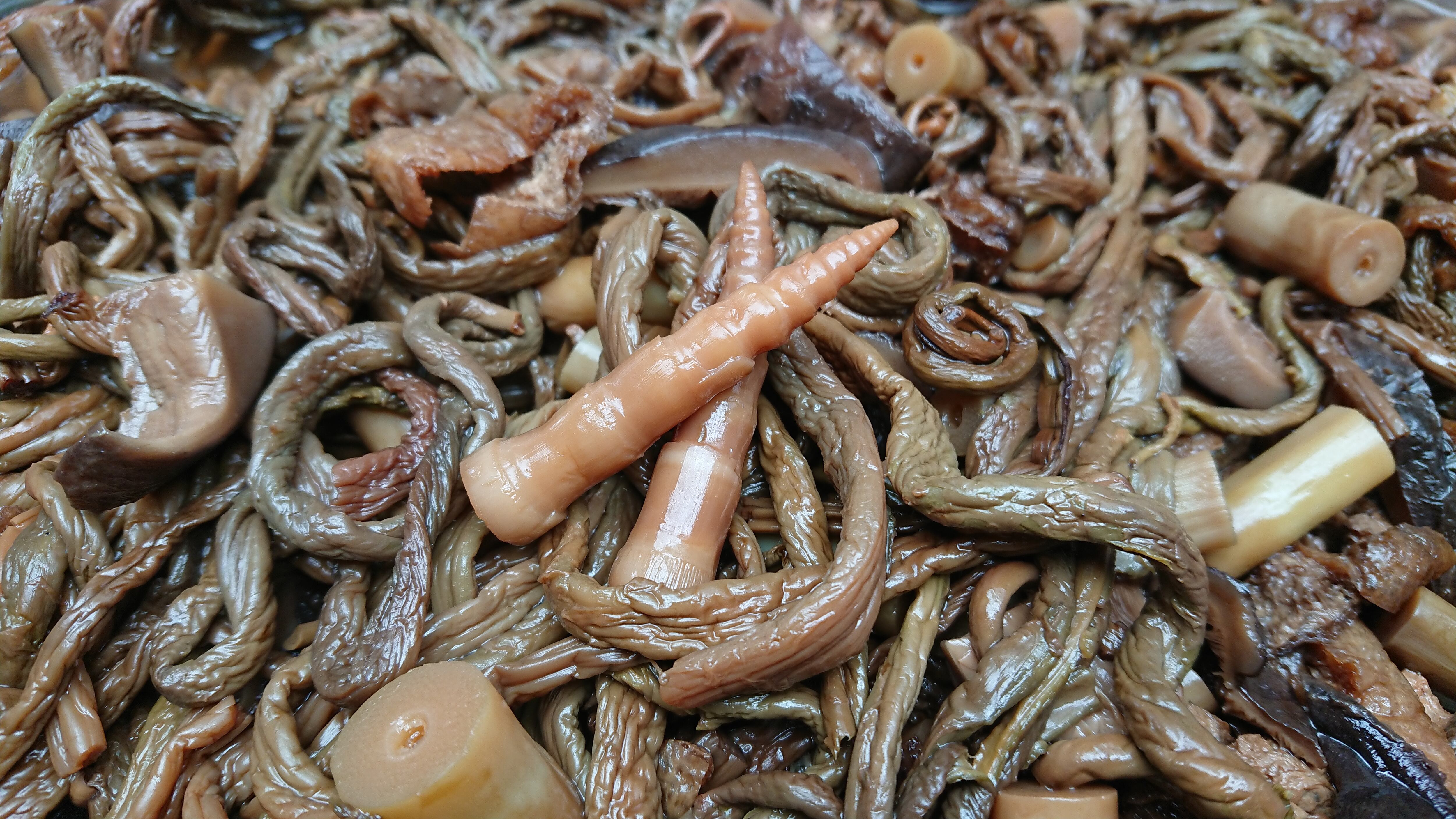 会津の奥山で採ったぜんまいを根曲がり竹(細竹)、椎茸、油揚げと一緒に煮物にしました。